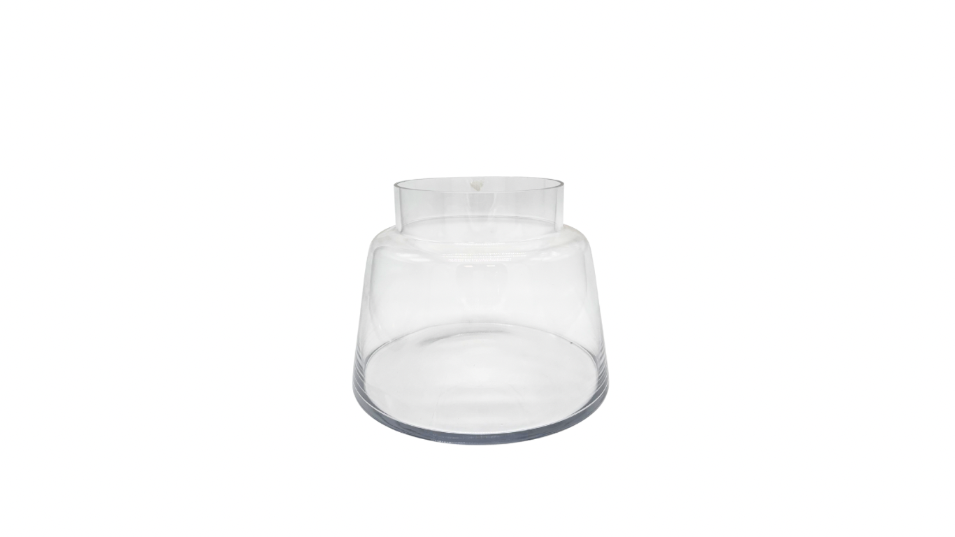 ואזה רחבה ובעלת נוכחות, מושלמת למרכז שולחן או לפינת סלון. מתאימה לפרחים מלאים, ענפים קצרים או קומפוזיציה נמוכה ואלגנטית.