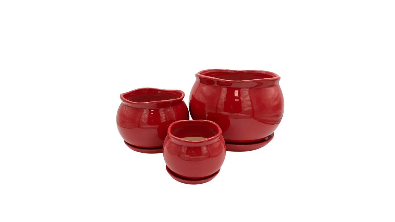 סט בלום אדום בעל גוון עשיר ומבריק שמכניס אופי ונוכחות. שלושת הגדלים מאפשרים משחקים מגוונים על מדפים, שולחנות ושידות. הוא נראה נהדר עם צמחייה ירוקה בהירה או פריחה לבנה ורודה שמדגישה את העומק של האדום.